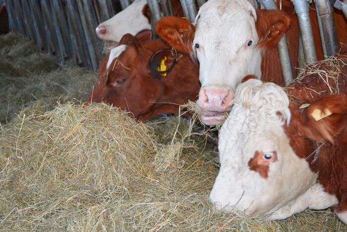 Im Winter steht das artenreiche Sommerfutter in getrockneter Form als duftendes Heu auf dem Speiseplan der Kuh. Eine Heumilchkuh bekommt davon bis zu 20 kg pro Tag. Dazu eventuell noch etwas mineralstoffreichen Getreideschrot.