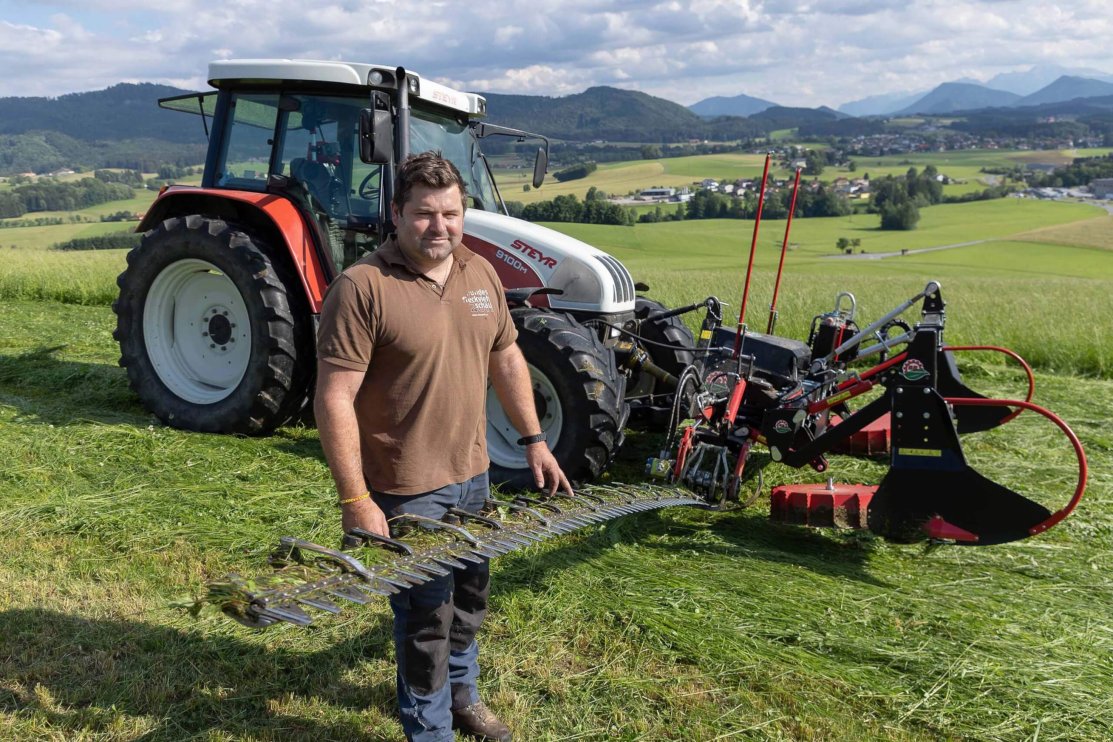 Der Artenreichtum in der Natur ist für das Funktionieren der Ökosysteme sehr wichtig. Diese Artenvielfalt sorgt auch dafür, dass unsere Heumilchkühe in der Region bestes Futter bekommen, und das ist wiederum eine Voraussetzung für die Qualität unserer Heumilch-Käsespezialitäten. Daher setzen wir uns aktiv für den Erhalt und den Schutz der Artenvielfalt ein und arbeiten dabei auch intensiv mit unseren Heumilchbauern und -bäuerinnen zusammen. Neben verschiedenen individuellen Maßnahmen auf den Höfen kann die Biodiversität auch durch den Einsatz innovativer Geräte gefördert werden. Eine Möglichkeit ist die Verwendung eines sogenannten Doppelmessermähwerks.