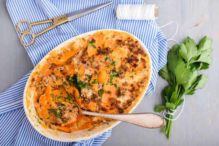 - Mengen Tipp: pro Portion etwa 30 bis 50 g Käse zum Überbacken.