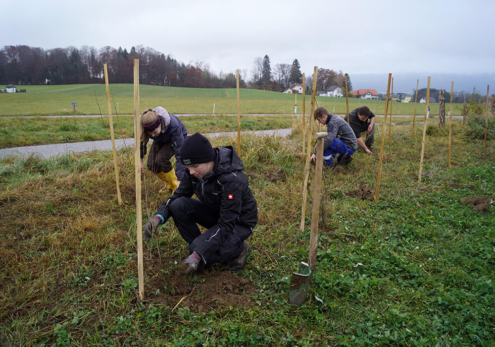 Bild unten: die HBLA Schüler Moisl Selina, Maier Andreas, Nestler Sarah pflanzen heimische Sorten