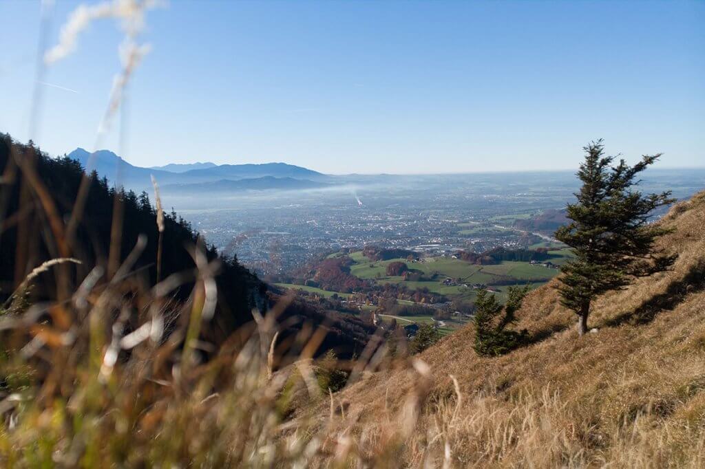 2. Eine kurze Wanderung auf den Nockstein. Er ragt neben dem Gaisberg aus dem Wald und gehört zu den liebsten Hausbergen der Salzburger. Trotz kurzer Strecke ist bei dieser Wanderung für Abwechslung gesorgt –am Ende gibt es sogar eine kurze Kletterpassage. Am Gipfel angelangt, werdet ihr mit einem schönen Ausblick auf die Stadt Salzburg und die umliegenden Berge belohnt. Besonders im Herbst ein farbenprächtiger Anblick.