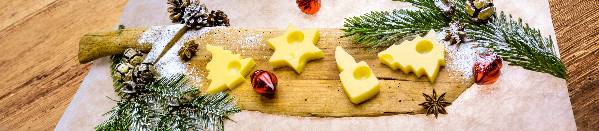 Bevor ihr den Käse anrichtet, solltet ihr ihn temperieren. Wie ein guter Rotwein, entfaltet er sein volles Aroma erst bei 16 bis 18 Grad. Dafür müsst ihr ihn etwa 30 Minuten vor dem Anrichten aus dem Kühlfach geben.