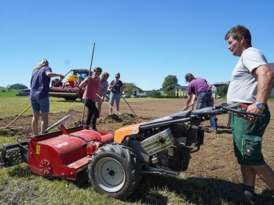 Im August 2020 haben unsere Bäuerinnen und Bauern im Rahmen des von Bund, Ländern und EU geförderten Projektes „Wir Baue(r)n für die Vielfalt“, bei dem die Fa. WOERLE Projektpartner ist, gemeinsam mit unserer Käserei und dem ÖKL als Projektträger, mit Unterstützung der Landwirtschaftskammer Salzburg, Vertretern der Landesregierung, dem Maschinenring Salzburg und Schülerinnen der HBLA Ursprung eine neue Blühwiese angelegt. Gemeinsam ist so am Hof der Familie Weissl eine Blühfläche in der Größe von 2.000 qm, was ungefähr 3 Tennisplätzen entspricht, entstanden! Vielen Dank an unsere Referenten Dipl.-Ing. Matthias Greisberger, BEd (Landwirtschaftskammer Salzburg) und Manfred Tanner (Maschinenring Salzburg). Jetzt heißt es Geduld haben, bis die ersten Pflanzen wachsen .. blühende Bilder folgen ..