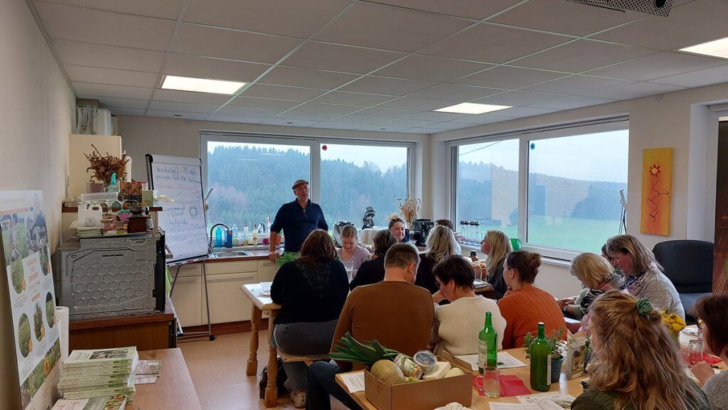 Im Rahmen des von Bund, Ländern und EU geförderten ÖKL-Projektes „Wir Baue(r)n für die Vielfalt“, bei dem die Fa. WOERLE Projektpartner ist, erläuterte die Tierärztin Elisabeth Stöger bei einer Wiesenbegehung den positiven Effekt vielfältiger Pflanzenbestände auf die Tiergesundheit. Welche Pflanzen auch für uns Menschen essbar sind, wie man diese Schätze auf der Wiese findet und in leckere Gerichte verwandeln kann, zeigte Kräuterexperte Andreas Thomasser anschließend. Vielen Dank an die Referenten für diese tolle, spannende und kulinarisch genussvolle Fortbildung.