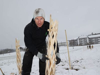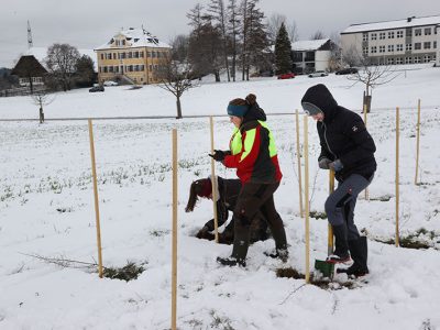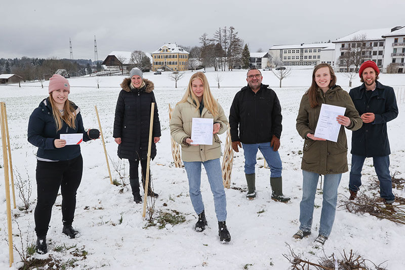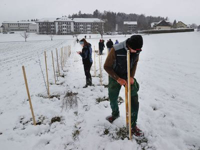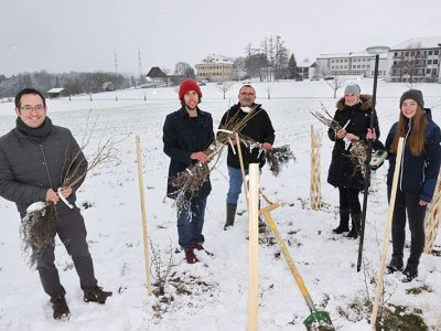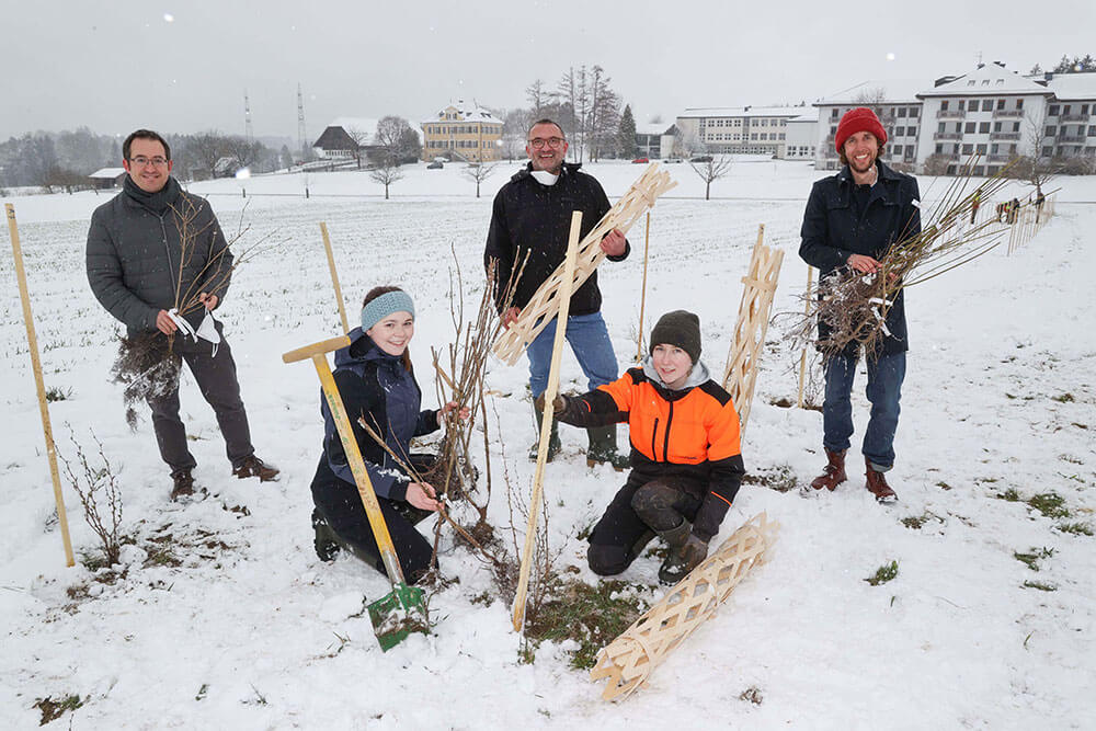 Hecken für den Klimaschutz: Im Rahmen der Forschungskooperation von WOERLE und der HBLA Ursprung haben die SchülerInnen kürzlich insgesamt 320 Meter heimische Heckensträucher gepflanzt. Foto: Franz Neumayr