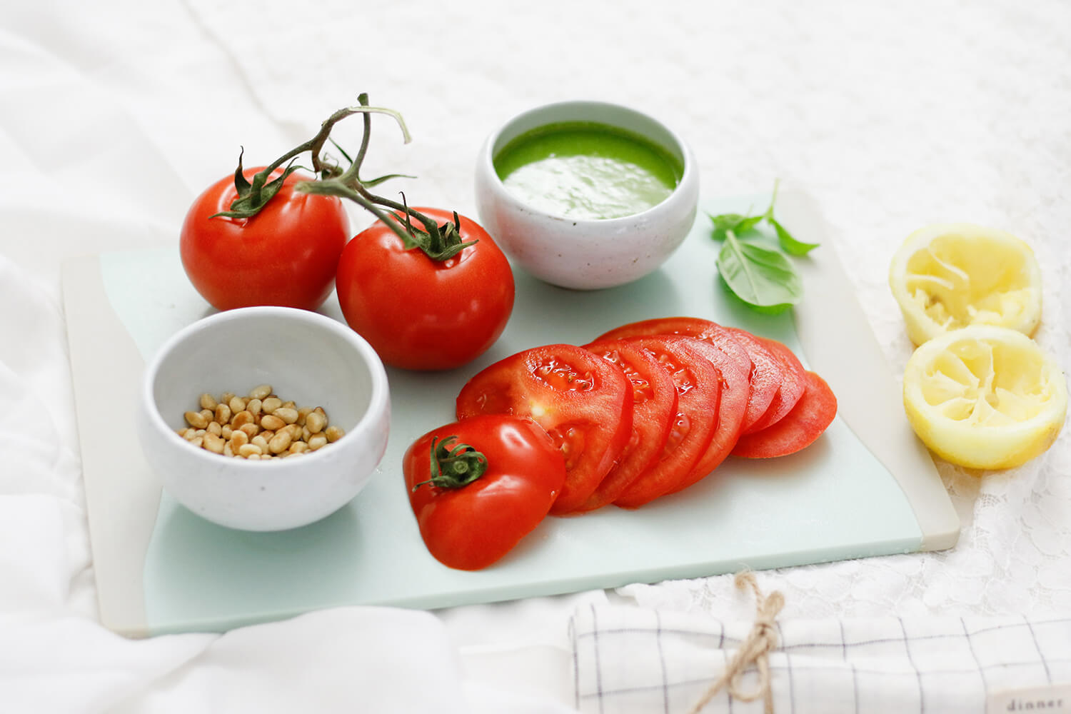 Tomaten-Mondseer-Caprese mit Basilikum-Pesto